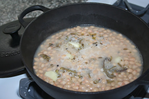 If you’re making the beans to use for the soup or the sausages, be sure to save the cooking liquid.