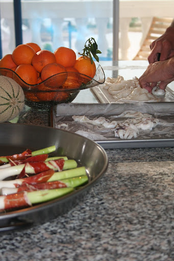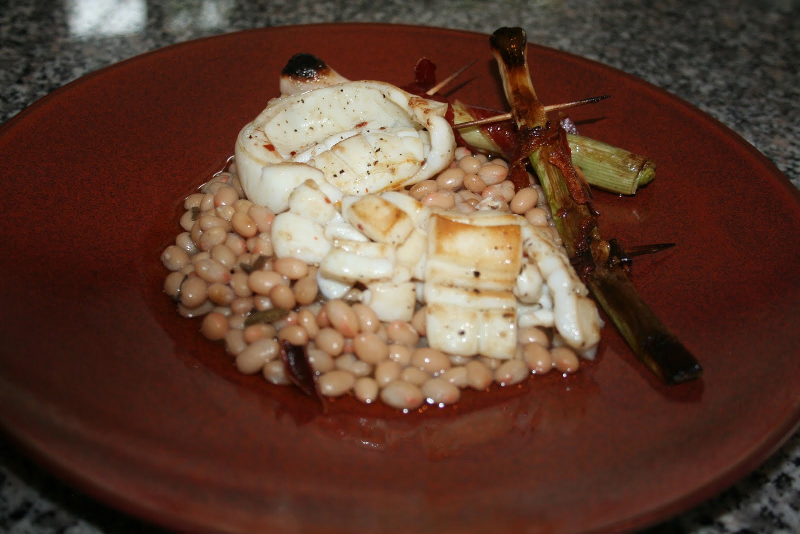 We set out on a mission this morning to try and replicate the cannellini beans and squid dish we loved so much in Spain. First stop was La Goulette fish market to buy squid. They came partially cleaned and eviscerated, but we had to pull up a video on the internet to learn how to finish them off. I think the fish sellers leave the ink sac in the squid for the women who want it for pasta.