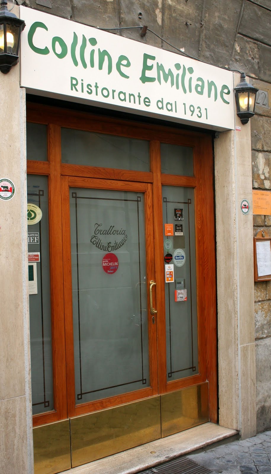 Our first meal on this trip began at the trattoria Colline Emiliane, near Bernini Square. This compact restaurant represents the regional cuisine of Emilia-Romagna, capital city-Bologna. The area has several culinary claims to fame, among them, Parmesan, balsamic vinegar, Bolognese sauce, and Parma ham. I can hardly imagine Italian food without all four of these staples.