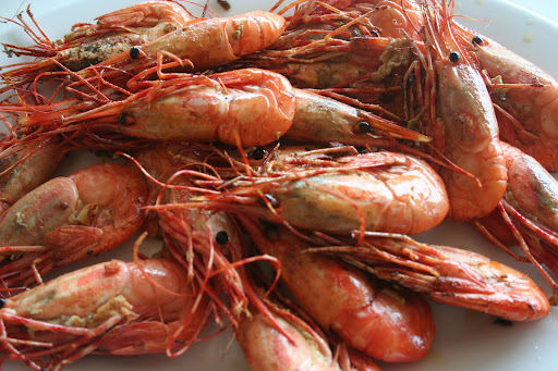 Oh my, we had a homemade summer seafood feast tonight. Our neighbor, Leo Travenshek, has a specialty seafood business raising enormous spot prawns. The Willows Inn, here on the island, has a special each Sunday serving spot prawns on their deck, but we were hungry for them on Monday so we bought and cooked them ourselves. Allan has perfected the garlic, butter, olive oil sauté and he made the prawns.