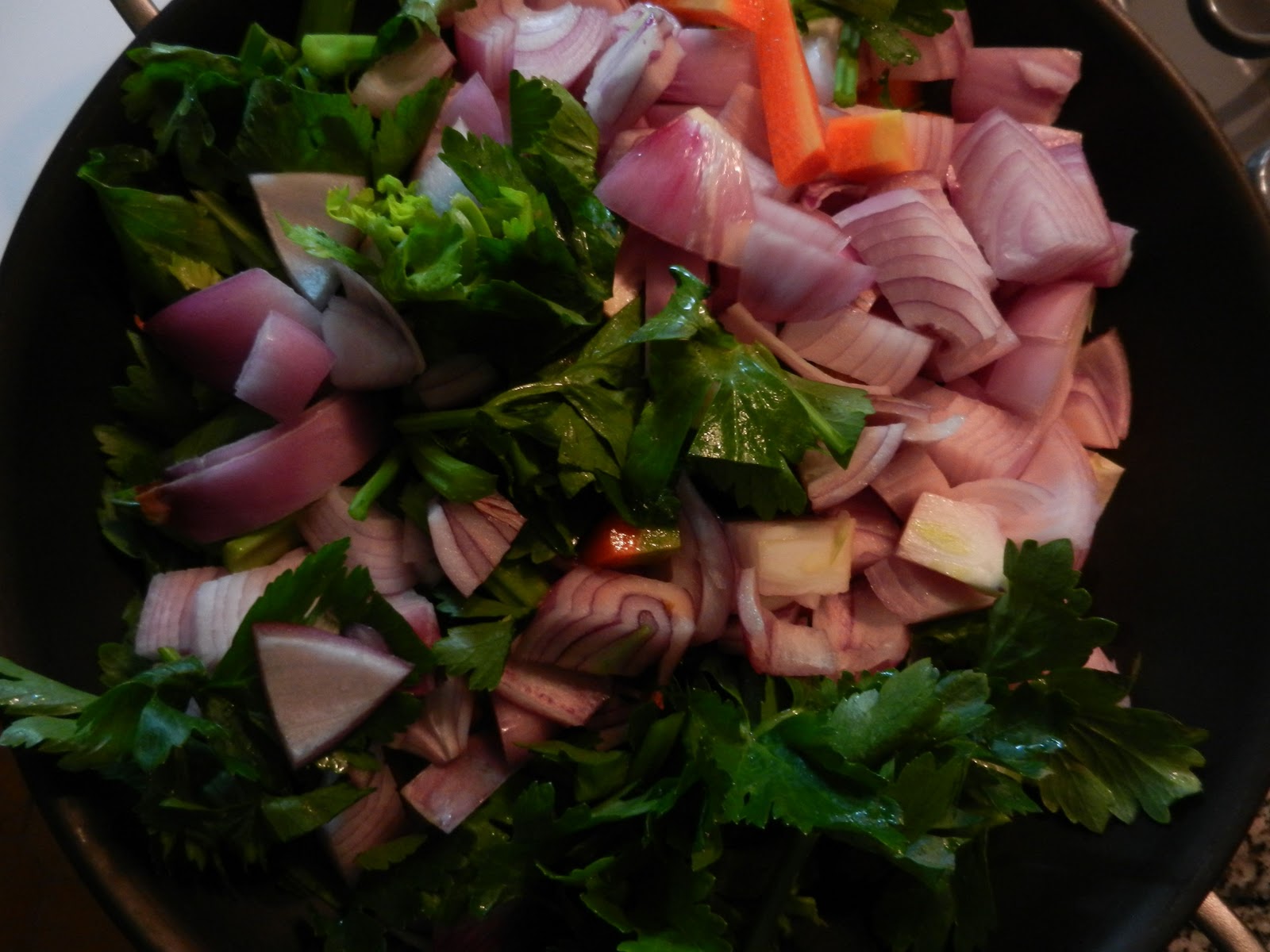 I am on a trajectory this week to make a greens soup that was described by a guest on The Splendid Table, Anna Thomas, who wrote a book called Eating Well. I am going to save her greens soup recipe for a few days because I first need to make a deeply flavored vegetable stock. I turned to the experience of Lynne Rossetto Kasper on this. She has a recipe for a Hearty Vegetable Broth. Her words, “There is nothing weak-kneed about this vegetable broth. It’s big flavors hold their own in any dish…”