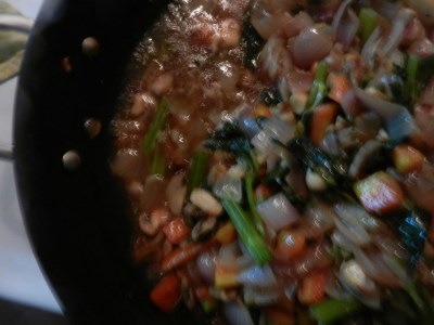 1 large ripe fresh tomato, chopped, or 2 canned plum tomatoes, crushed