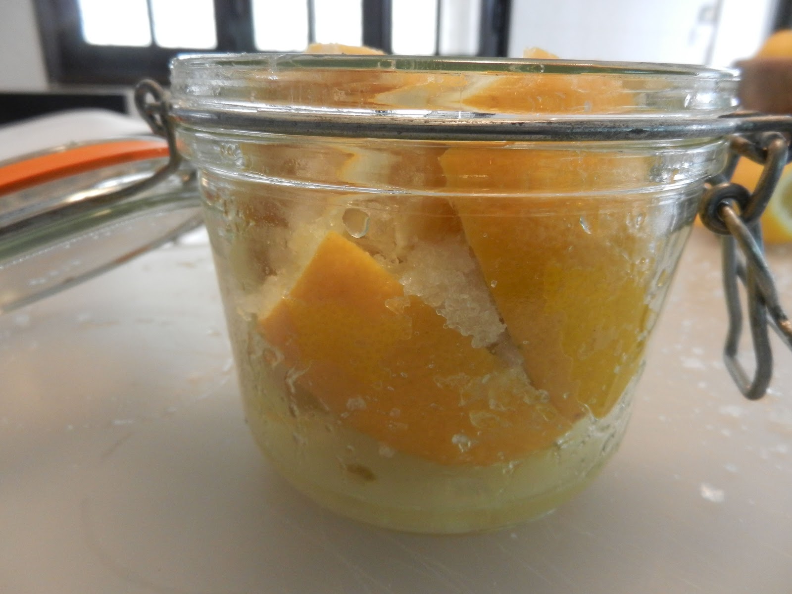 Every little Mom and Pop provisions shop around Tunis carries a few staples that a mother could send her 11 year old to fetch as she’s making dinner and realizes she’s missing a key ingredient. There will always be canned tomatoes, tuna, a big variety of pasta and couscous for a little store, eggs, butter, and a few cheeses, olive oil, a variety of cured olives, and preserved lemons. When I moved here, I intended to be all about using preserved lemon, but, as with the olives, while the store-bought ones are nicely flavored, I wonder how they have been prepared and handled. How many times has the brine been reused? Thinking about that puts me off a little. Preserving my own olives turned out to not be so hard. Preserving lemons takes just a few minutes to get started and about a month till you’re in the gold.