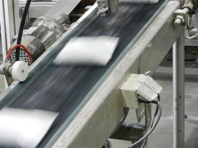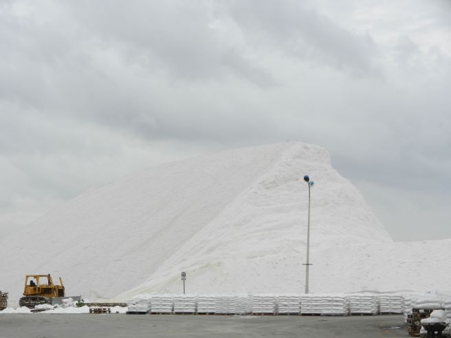Here in Tunisia, the conditions are perfect for the production and harvest of sea salt only from May to September, with a peak window of about 5 weeks.  All of the salt gleaned from that harvet is augered into one enormous mountain that sits uncovered, outdoors and for the rest of the year, the business is all about processing, packaging, and distributing the product for sales.