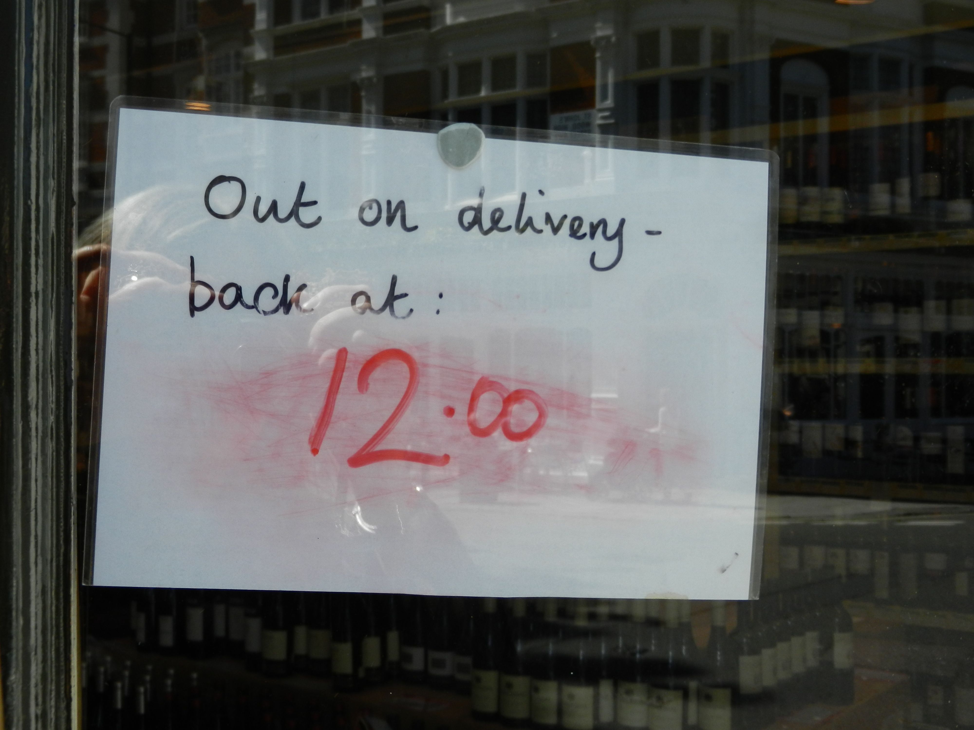 This well-stocked wine shop, Jeroboam’s, had a basketed bicycle out front as though it was for making home deliveries. Cute prop, I thought. About 20 minutes later, I passed by the store again. The shop was locked up and a sign was in the window.