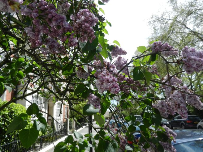 My husband was in meetings all day today so I was left to explore on my own. Oneof my goals for this trip to London was to get to know some of the neighborhoods so I radiated out from our hotel into St. John’s Wood. The church, a medium-sized, Ionic-columned cathedral of the same name, is the central feature of the area, . The church is adjacent to a full city block of park space which includes an ancient cemetery that they now call a wildlife area and have let it become a bit jungly. It reminded me so much of the sweet little Elizabeth Park that was just a block from our house when our boys were preschoolers. They both have pointy wrought-iron fences, venerable trees, and perennial flower borders.