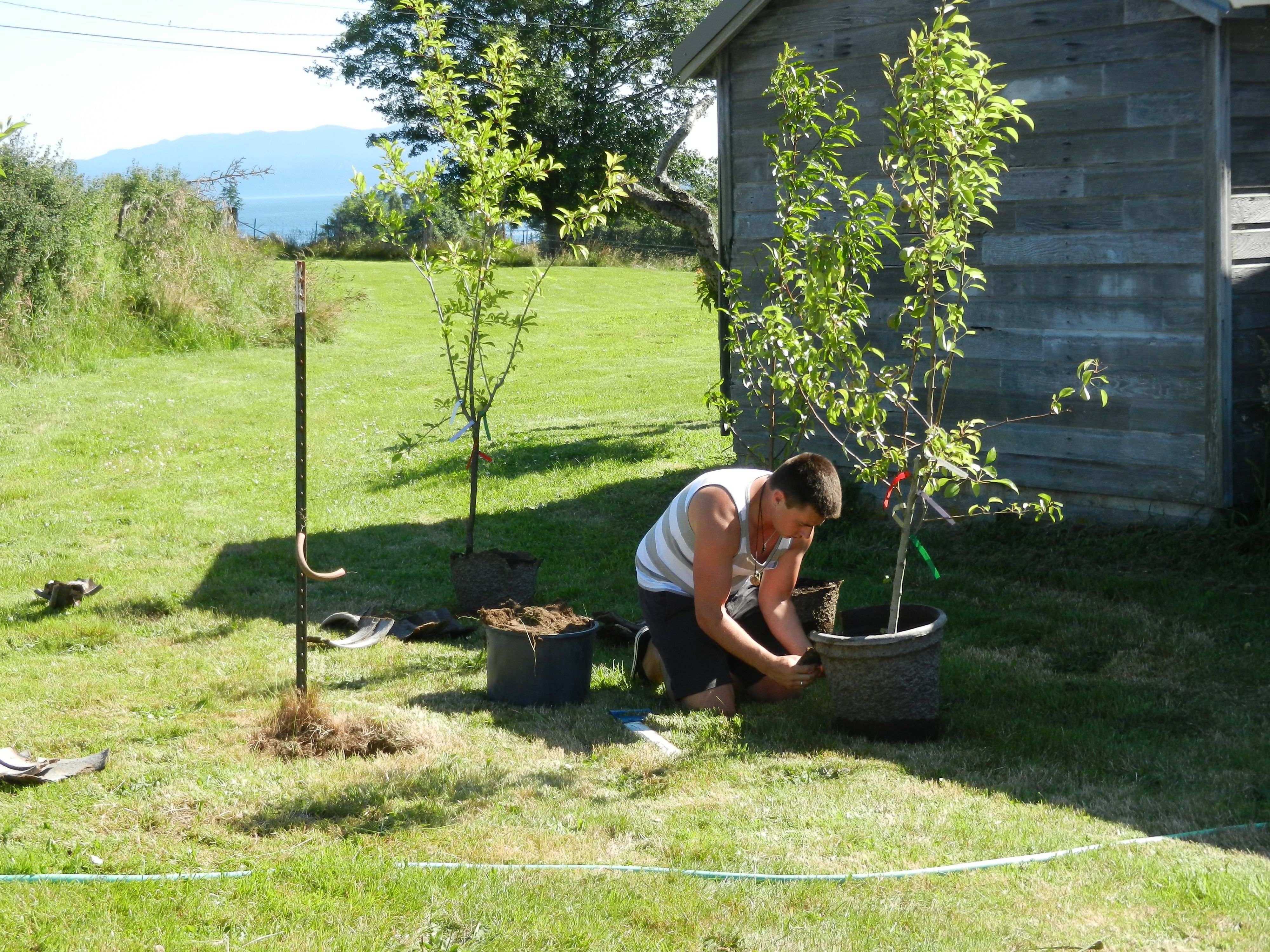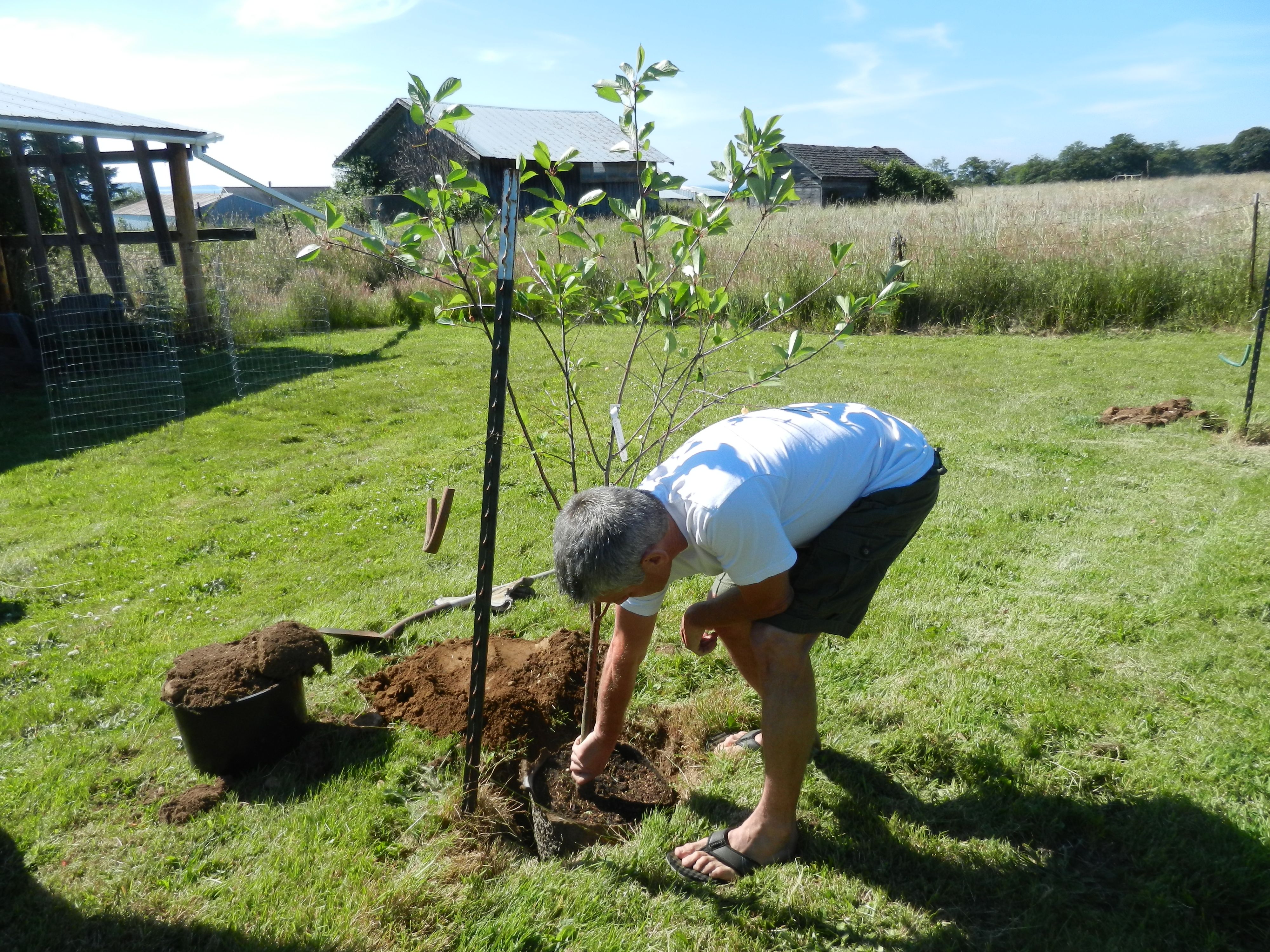 What a rewarding project for a few short hours. First there was no orchard and then there was an orchard. Now fingers crossed they will survive the ocean winds and the incessant nibbles of deer.