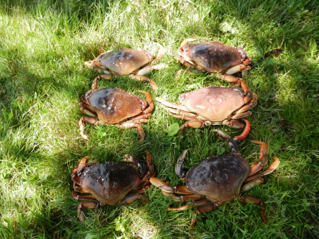 Yes, if you’re like our family, the comfort food of summer is a batch of doughy, fried, carbohydrate-filled pastries for dinner. Actually, we didn’t just wake up one day simultaneously craving pirogis. We were led to this place along a path of crab for breakfast, lunch, and also, dinner. In good summers, we catch a lot of Dungeness crab right off of the island shores in Legoe Bay.