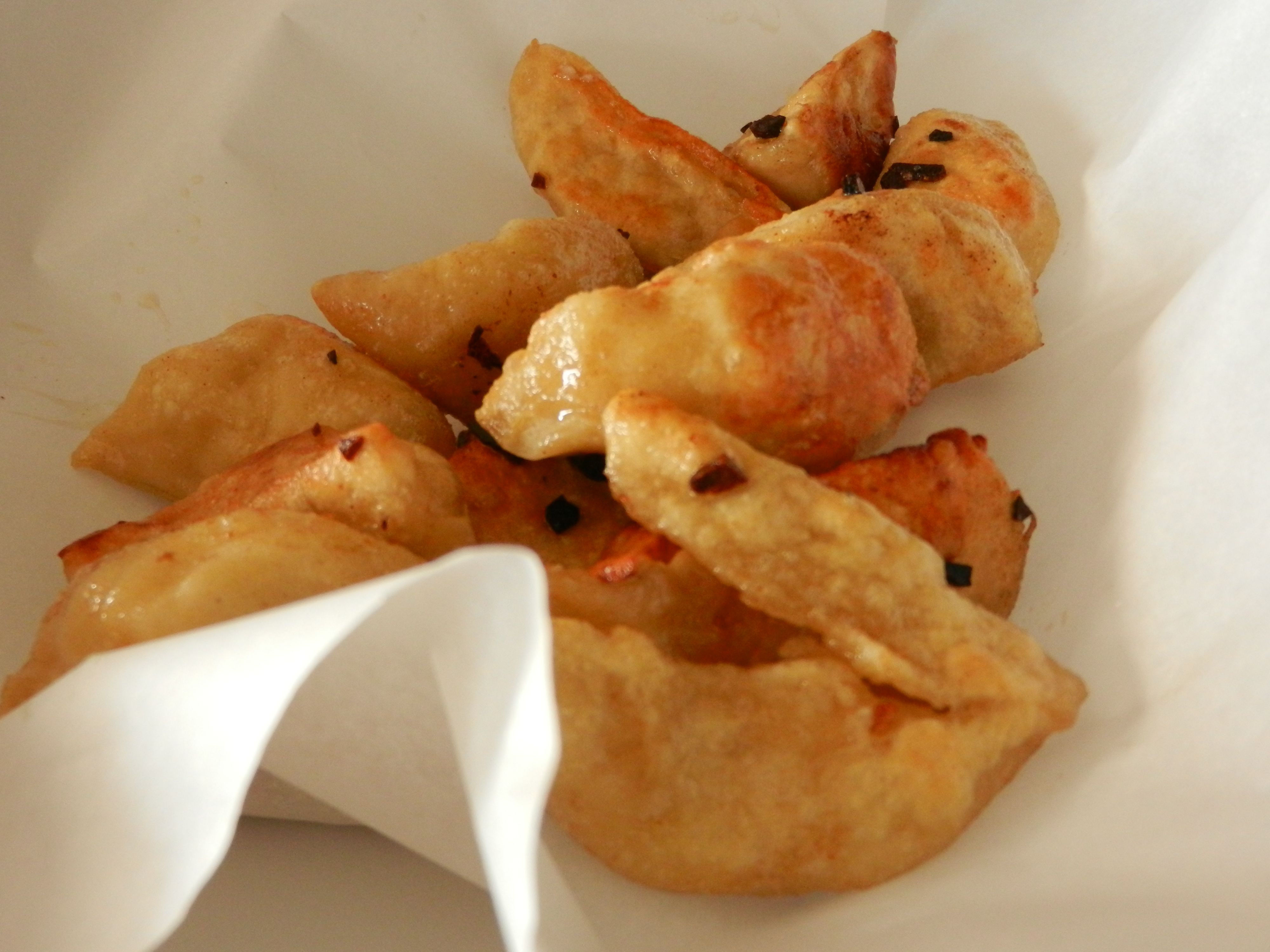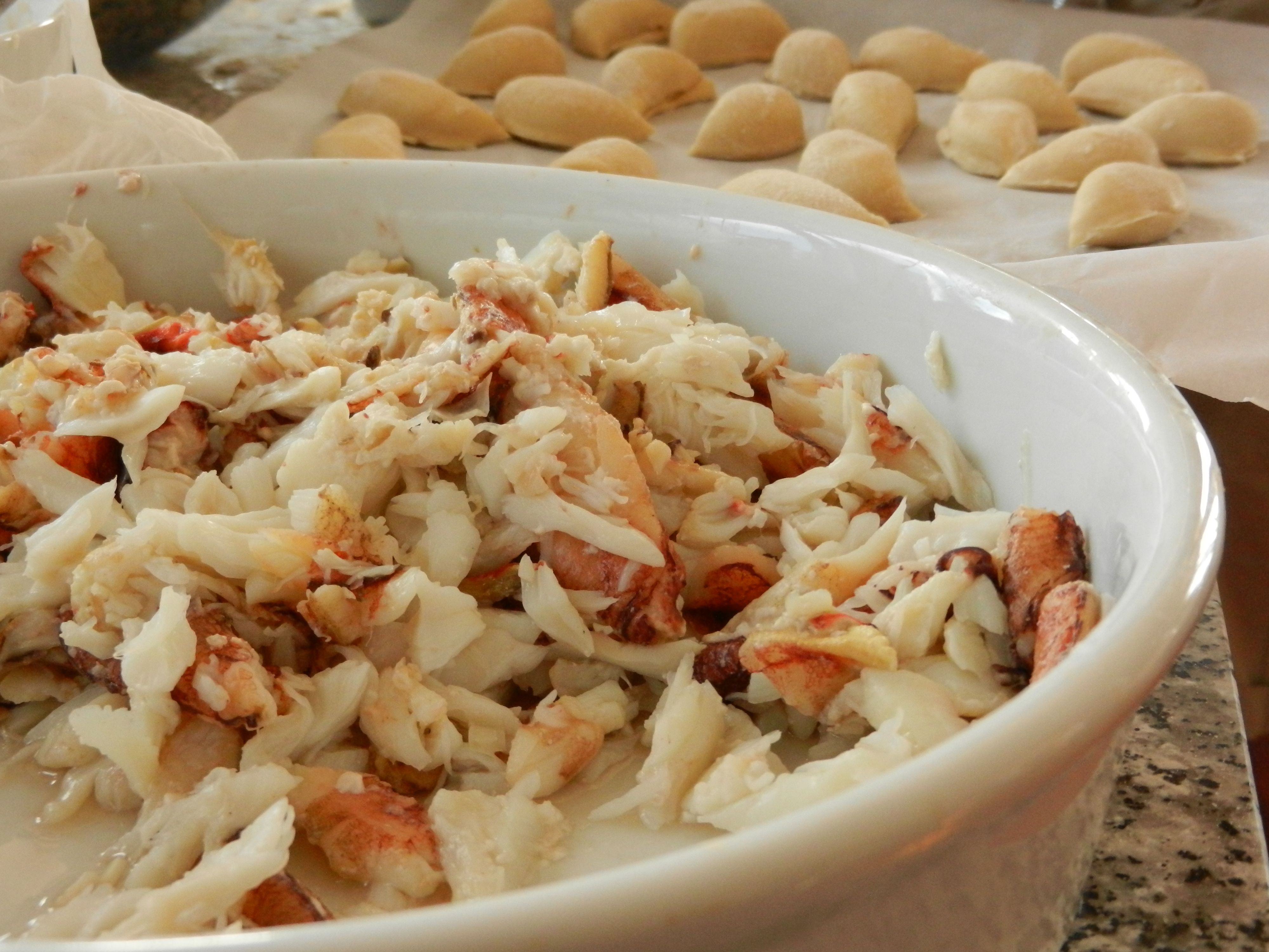 I really liked this pastry. It was easy to work with and fried up light and crispy. For our crab perogis, we tossed together lump crab meat, Parmesan cheese, and minced raw onion. They were very reminiscent of crab wontons, but there’s nothing wrong with that. You might want to earmark the recipe for next January when you will be a little more hungry for filling food.