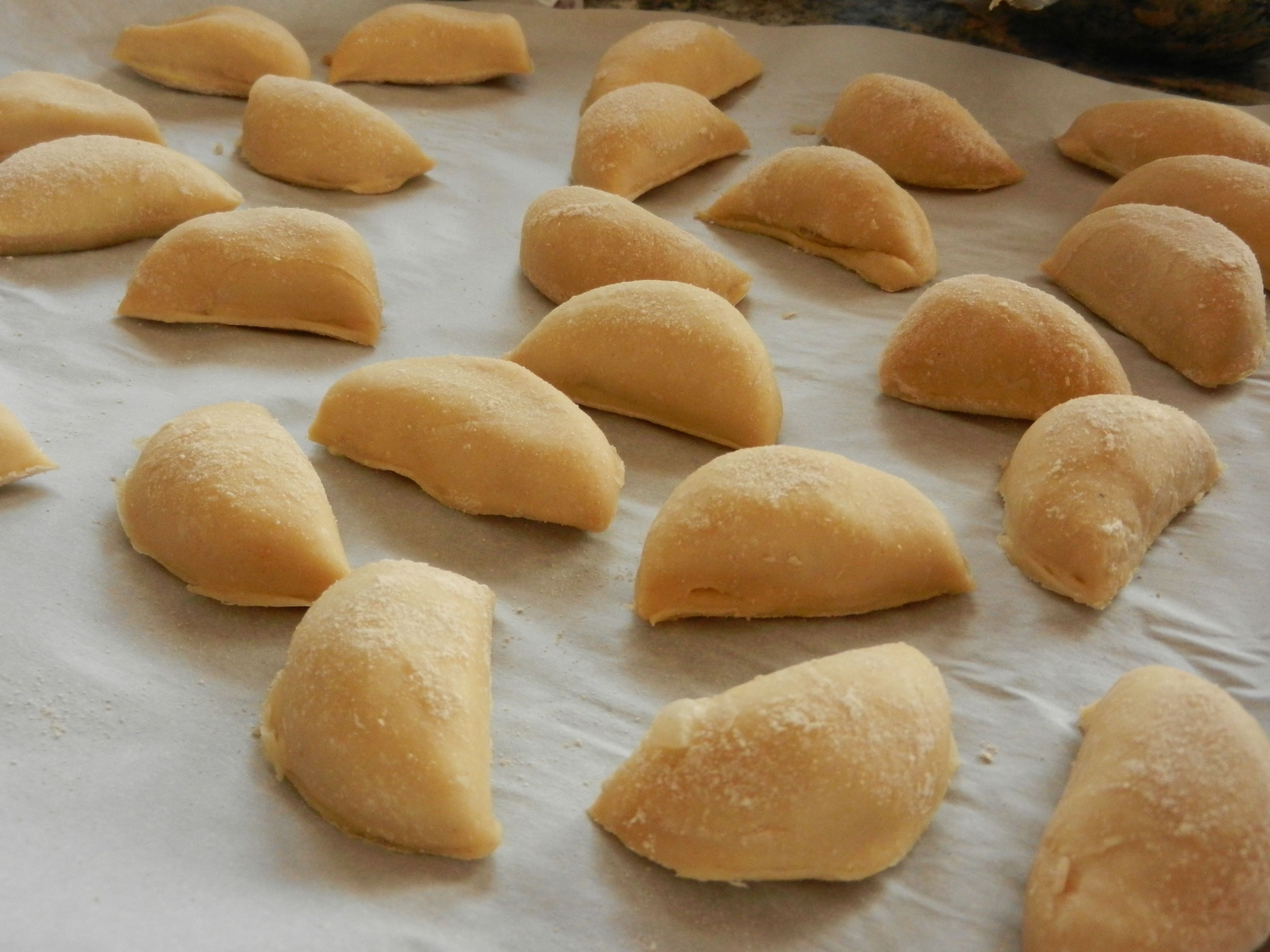 After indulging in heavenly pirogis in Krakau last winter, I have been wanting to make them myself, but every time I try to get my mind around doing it, I weaken in the face of all the separate preparations, the hours of formation, and the inevitable improperly sealed blobs that break open in the boiling water.