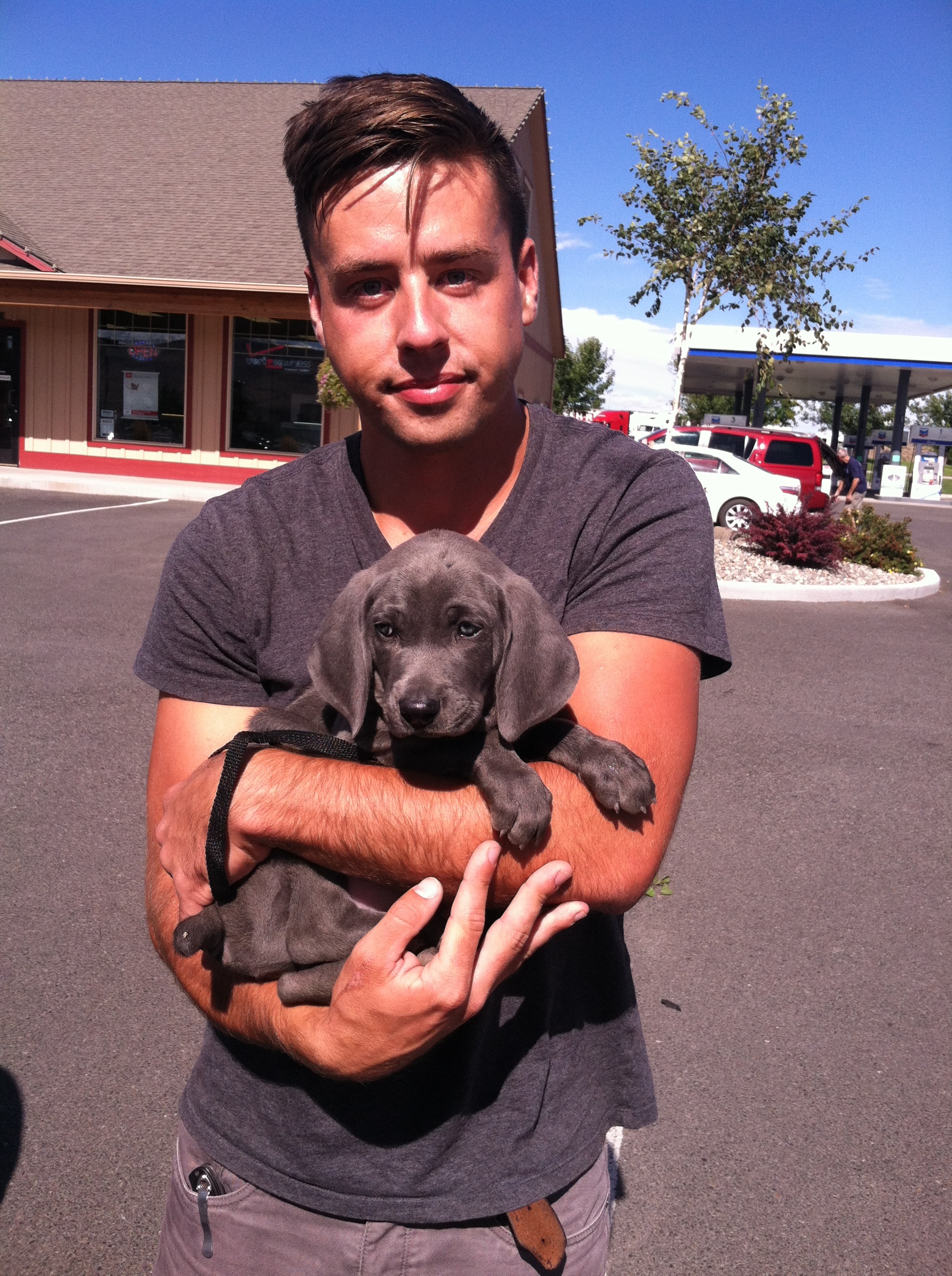 Almost two weeks ago, we said goodbye to Gabe, who has been our housemate here since last December.  He is great company, and he loves his rituals in Carthage, including daily swims in the Med., cooking, and reading in the garden, along with studying Arabic.  He will be finishing university this year, commuting from the farm on Lummi.  Here he is with his new roommate, a weimaraner puppy that is a total heart stealer.