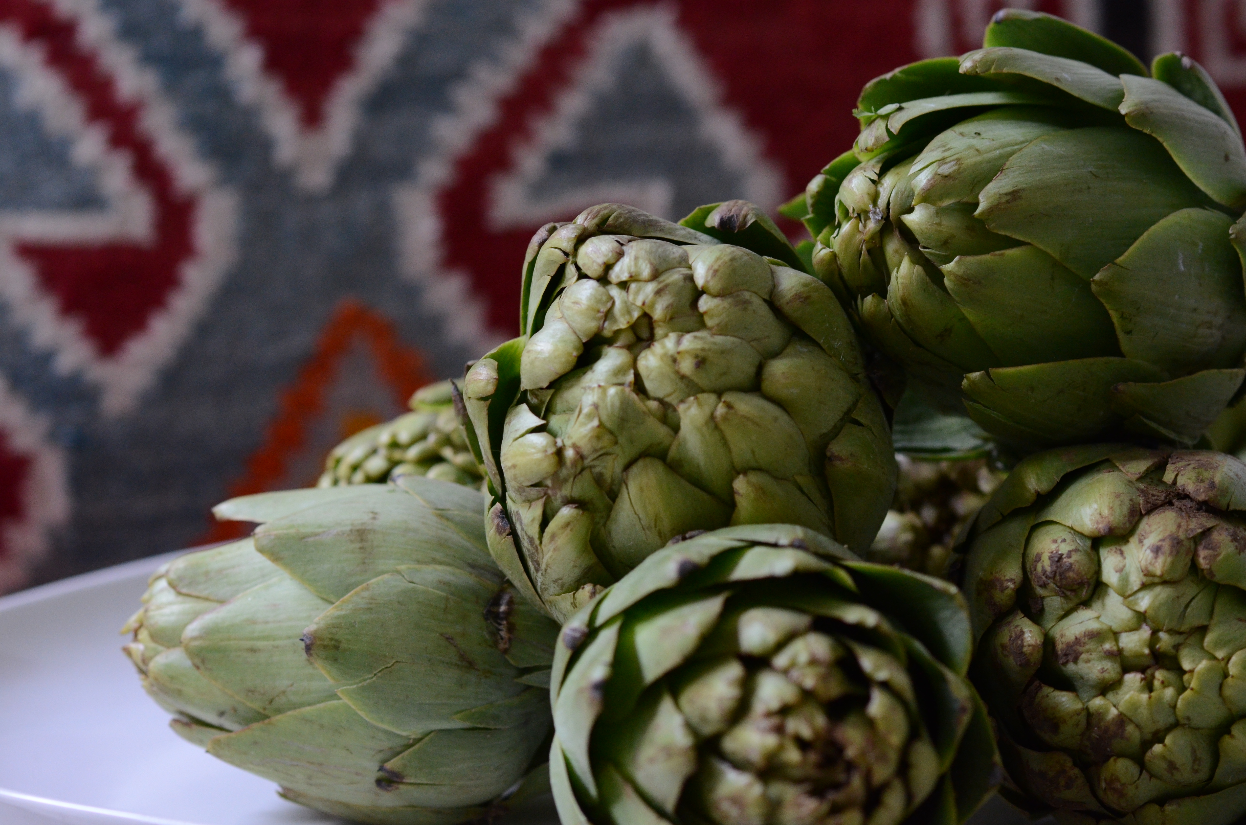 It is time to restock the larder.  This could mean just putting away the suitcases full of hoarded food items we brought back with us, an expat holdover practice we can surely start to take a look at since we can get so much of what we need and even want here.  We can get prewashed radicchio now, for heaven’s sake.  But what I’m talking about is the cooking bases that will give our meals depth of flavor on demand.  I am beginning first with some marinated artichokes.   Gabe did a nice job last fall of stocking his larder on Lummi with home-canned jars of salsa, pickled jalapenos, onions, and pickles.  When we were with him, we chomped our way through his stores, like vinegar-crazed termites.  Our favorite was his pickled jalapenos which we used liberally on scrambled eggs to nachos.  While I will be able to get all of the fresh artichokes I want in the coming weeks, and cheaply, I want to have some on hand that have that acidic base to brighten dishes in a different way.  Saveur magazine has the basic recipe.  Rather than process these in sealed jars, I’m going to try to keep them on hand in the refrigerator, refreshing the batch as needed. They will keep well for weeks, if continually covered with oil.