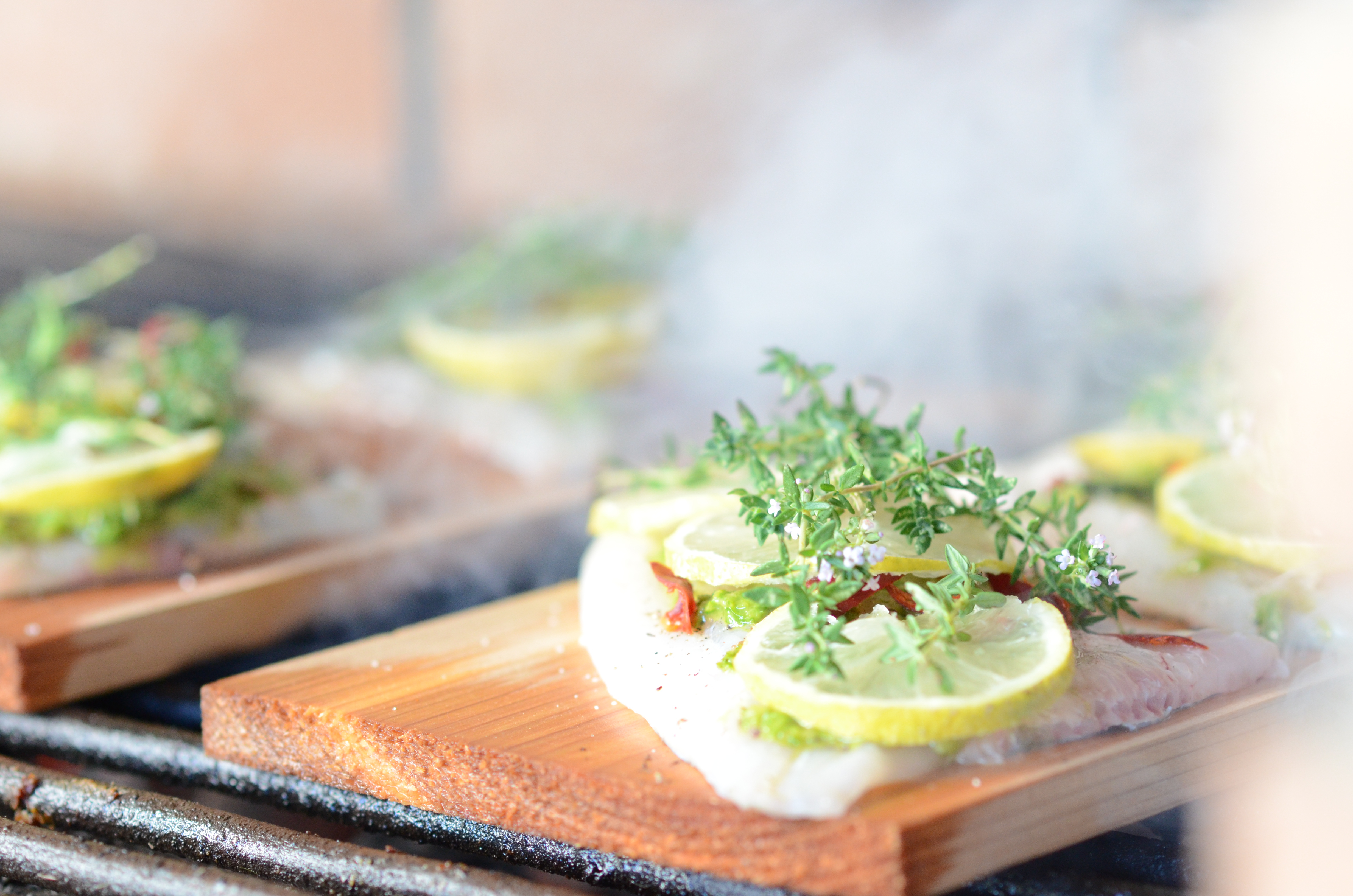 2. Heat a charcoal grill or set a gas grill to high; bank coals or turn off burner on one side. Grill kebabs on hottest part of grill, turning as needed, until slightly charred and cooked through, 12-15 minutes. Transfer kebabs to a platter; drizzle with oil and sprinkle with sumac. Serve with yogurt and hot sauce.
