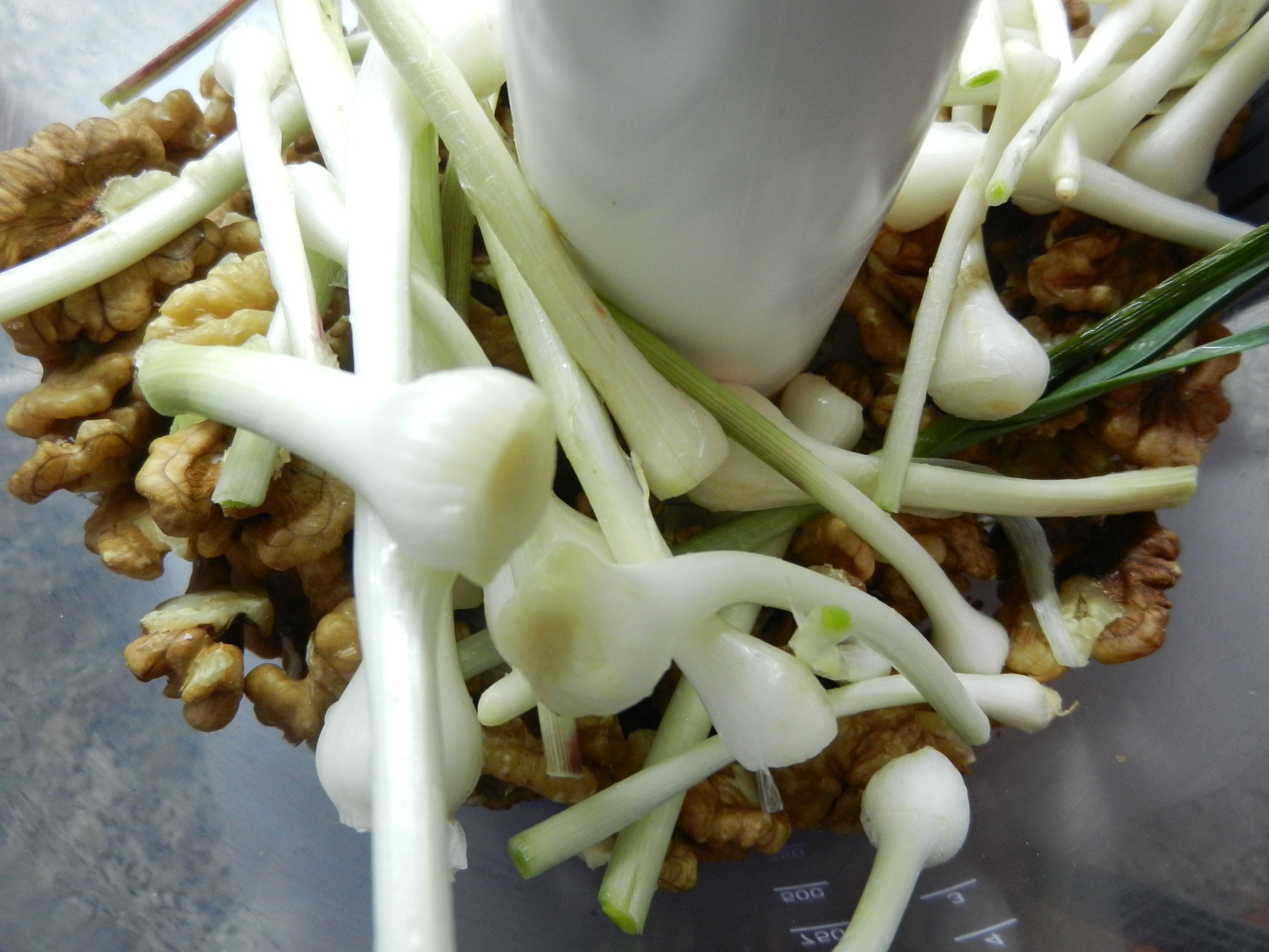 While dough is rising, toss walnut halves in 2 tsp. olive oil, 1 tablespoon paprika, and 1 teaspoon sea salt. Turn out onto a baking sheet and toast in a 350 degree F. oven for approximately 10 minutes. When slightly brown, remove from the oven, turn out onto a cutting board and roughly chop. Reserve.