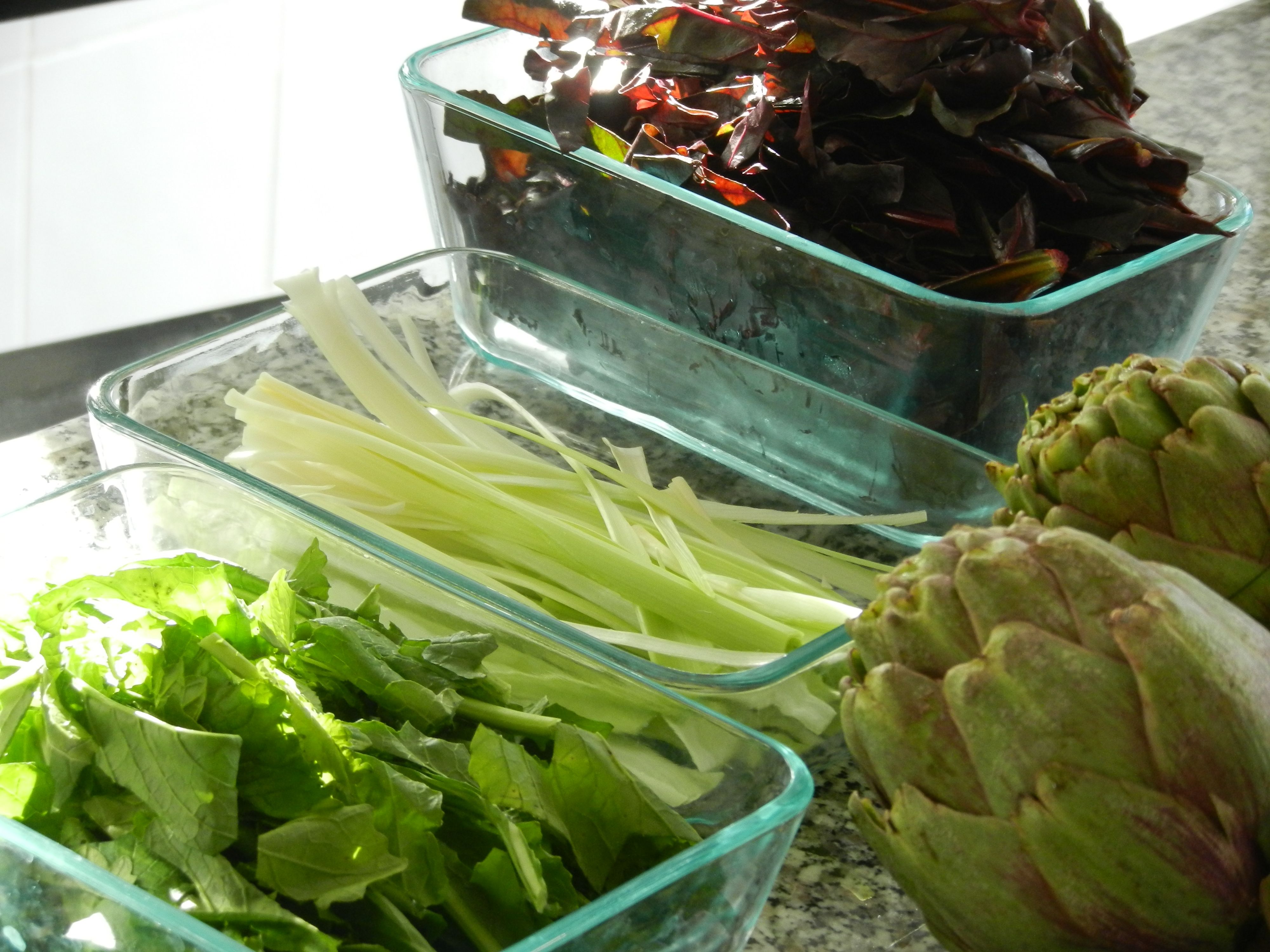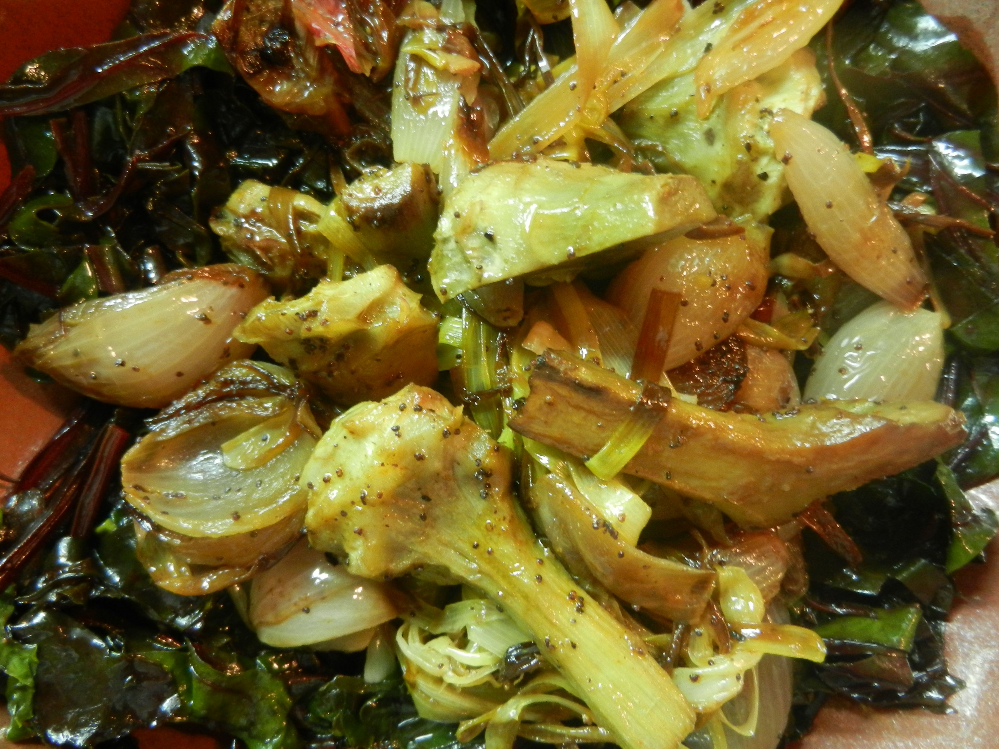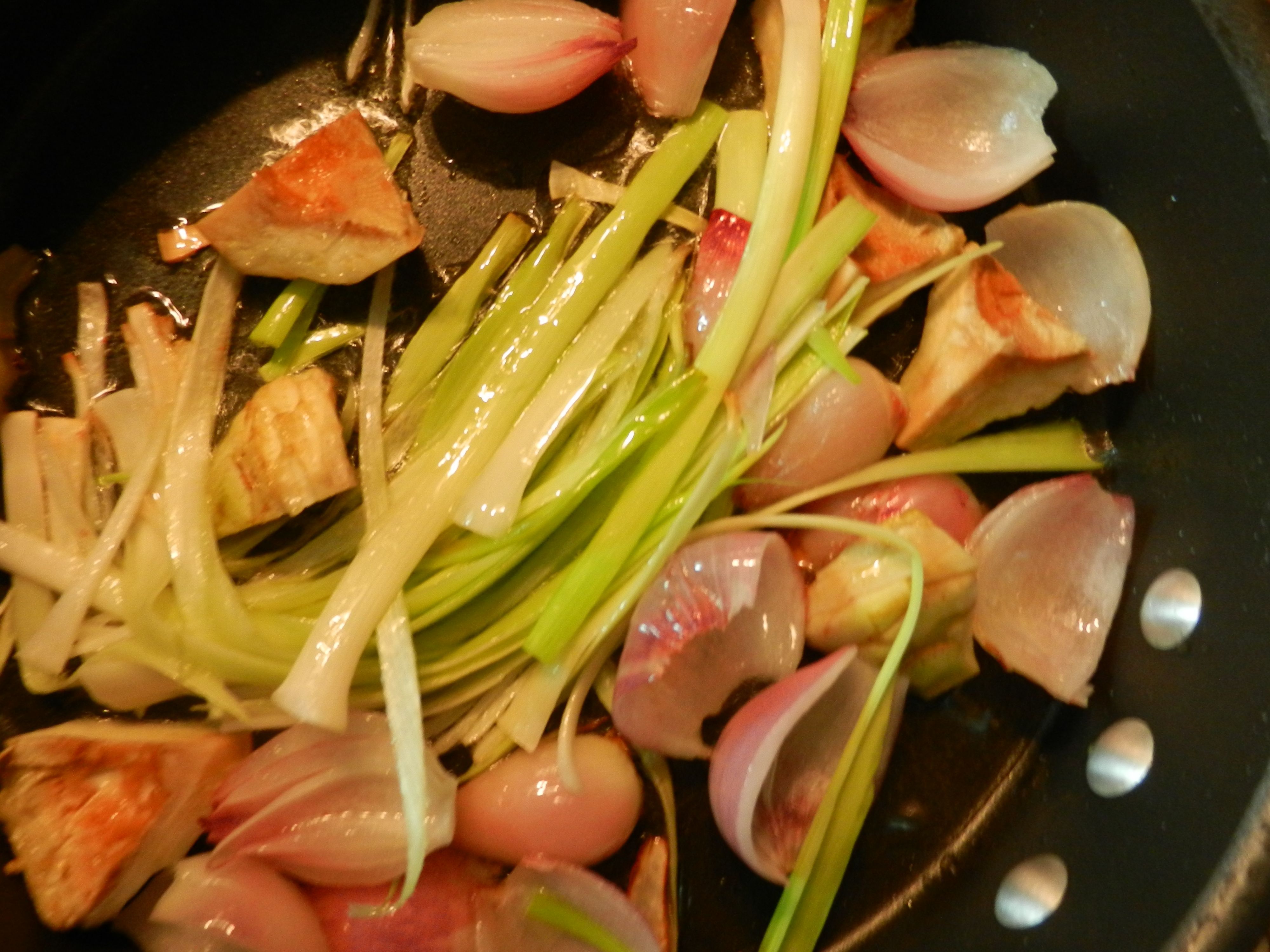 Chop leek. Saute in 2 teaspoons olive oil until lightly brown. Reserve.