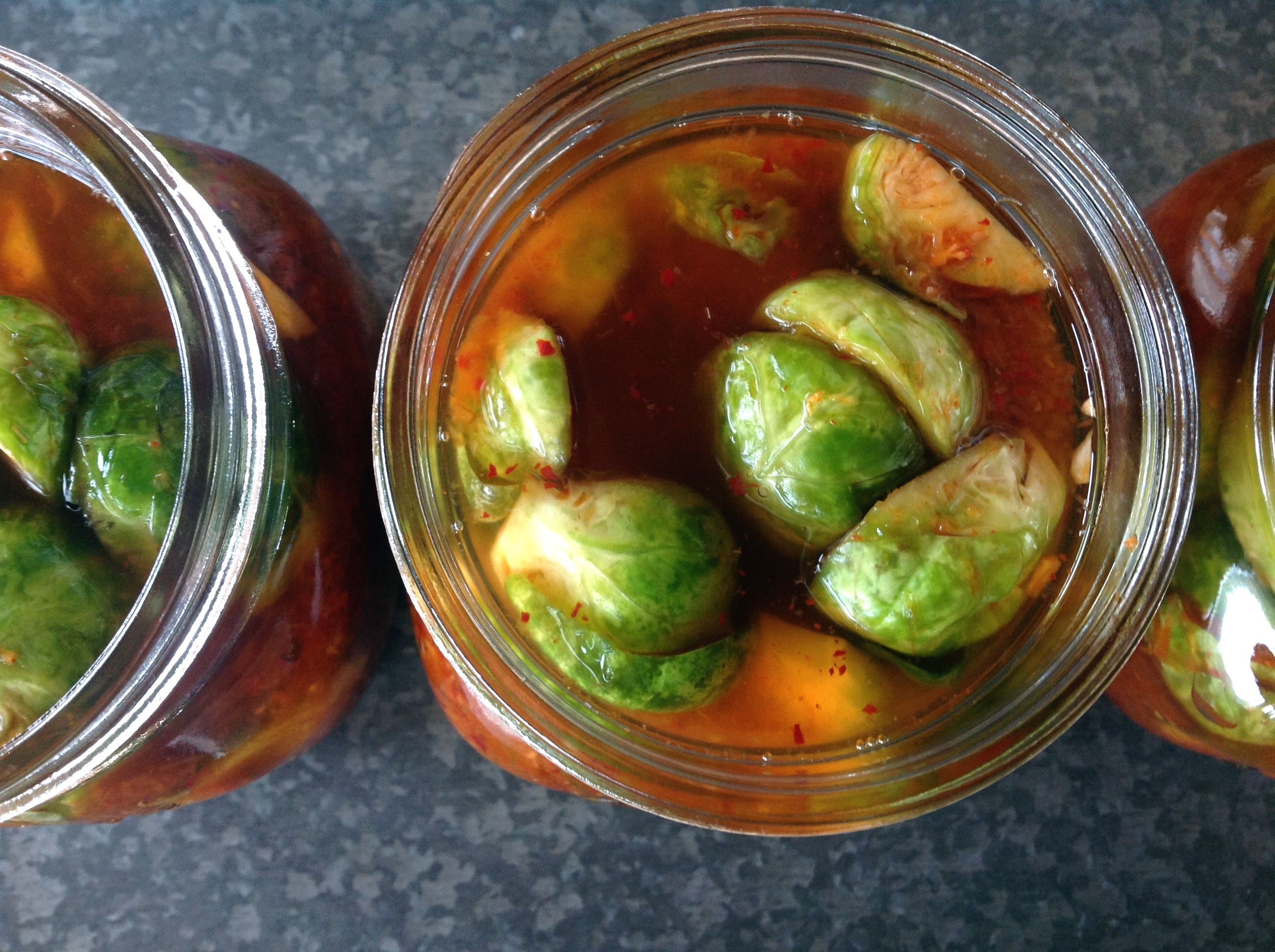 So the week didn’t just fly by without something to show for it, Gabe and I selected an anchor cooking project. He bought Brussels sprouts at the farmer’s market the day before I arrived, and then I did a little prep each day toward making up a few jars of this kimchi. I tell you our kitchen smelled just like a Korean restaurant the day I left, which is a cozy place, in my mind. Notice the tiny air bubbles around the jar rims in the picture. That is natural fermentation taking place. These should be incredibly delicious when I get back to Bellingham in early December to take care of a surgery I am finally willing to undergo. That is my commitment from the summer: to get past an unhealthy situation with my body.